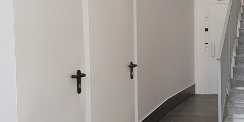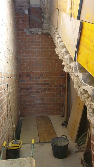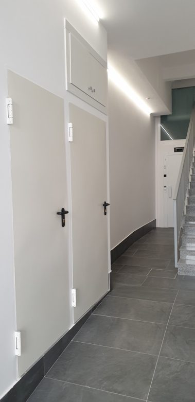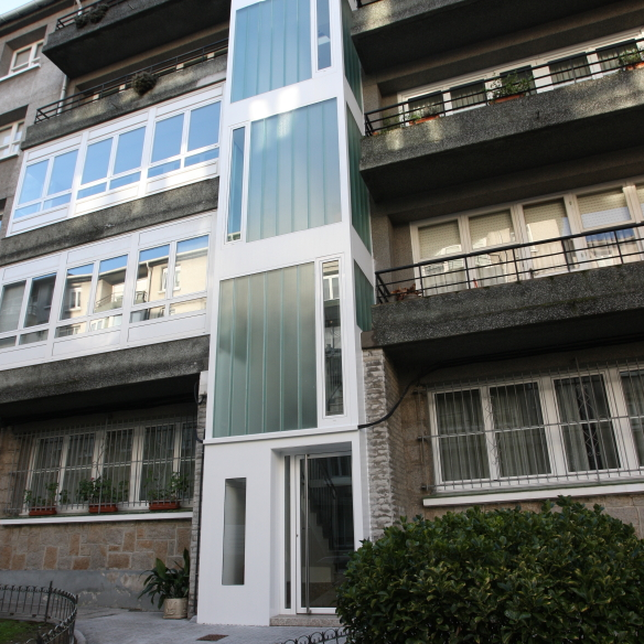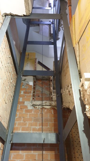 Realizamos la instalación de un ascensor en una comunidad de vecinos con un hueco mínimo y la reforma del portal de entrada